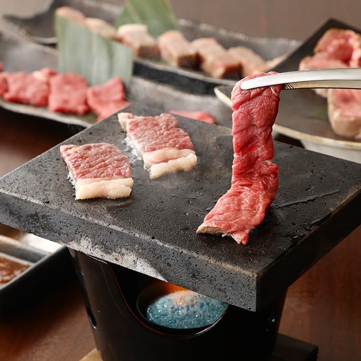 | 溶岩石でじっくり焼き上げる肉料理をはじめホタテや牡蠣など海鮮も充実! お酒によく合う料理が豊富な《朧》 厳選銘柄の日本酒や焼酎、ワインとともにお楽しみください。 |